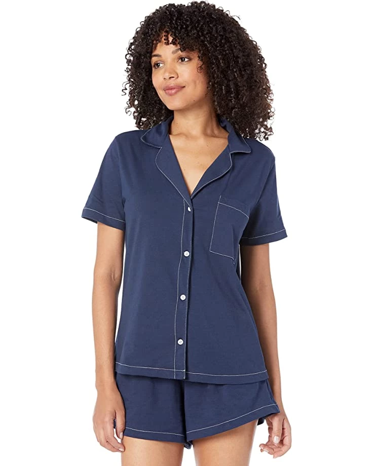 - Have a good night’s sleep or simply relax over the weekend wearing the Eberjey® Romy Organic – The Everyday Short PJ Set that feels comfy.