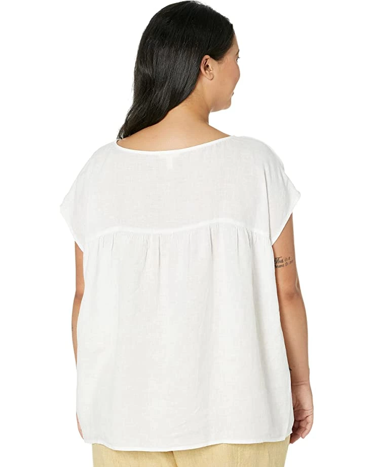 Eileen Fisher Bateau Neck Gathered Boxy Top in Organic Handkerchief Linen | Shirts & Tops