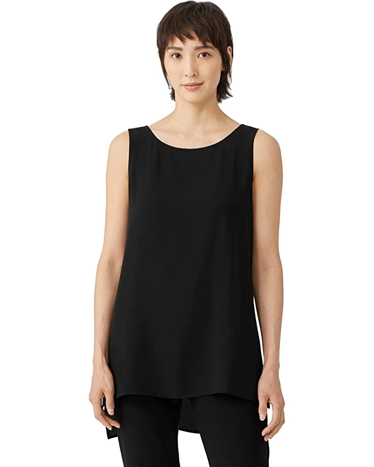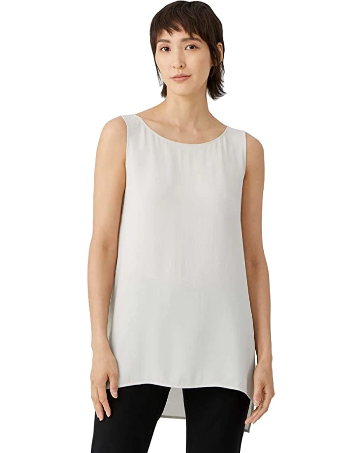 - Flaunt an elegant look with this simply styled EILEEN FISHER® Bateau Neck Long Shell.