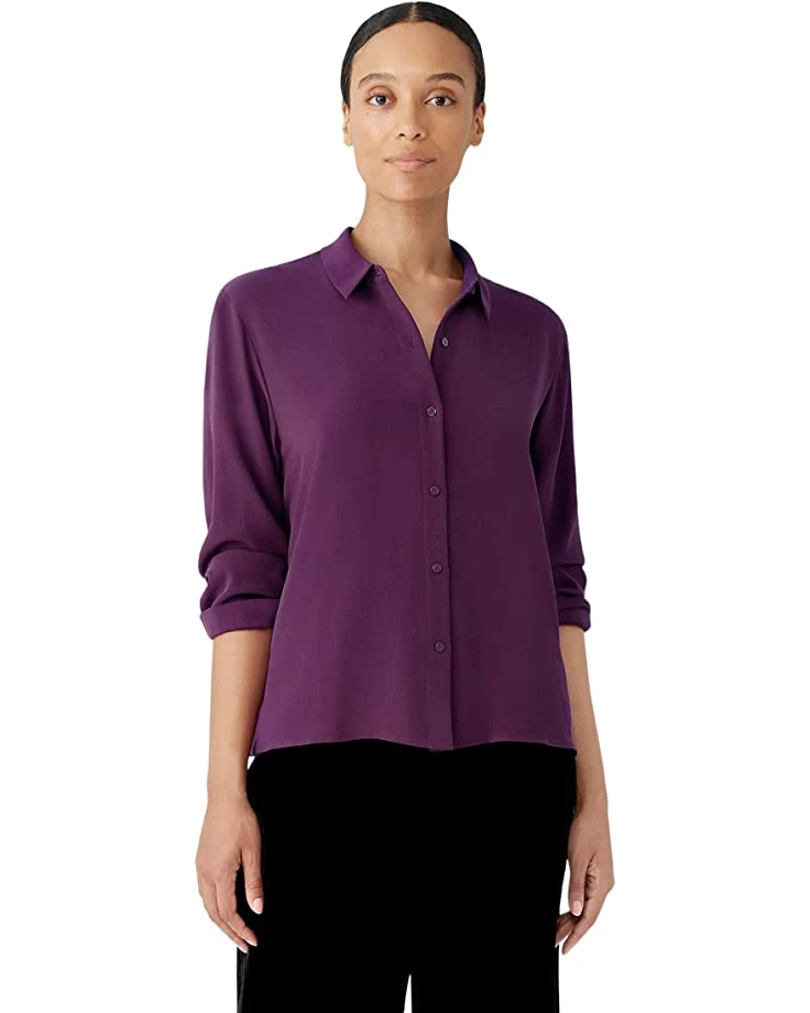 - Transform your look by wearing the Eileen Fisher® Classic Collar Easy Shirt featuring a fine quality fabric.