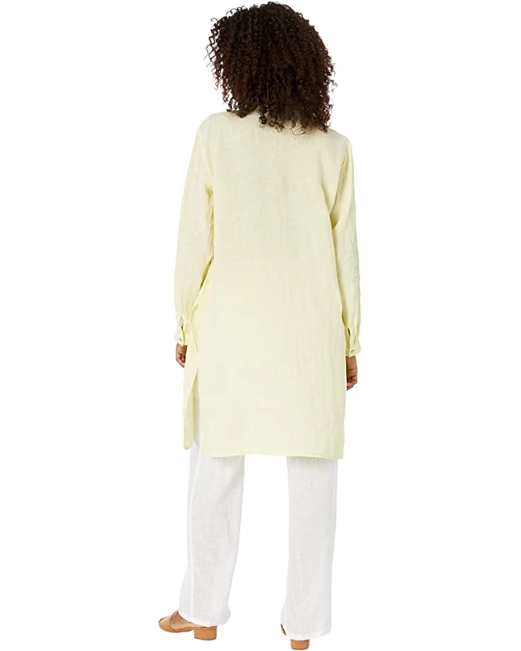 - Step up your style with the Eileen Fisher® Classic Collar Knee Length Shirt with High Slits.