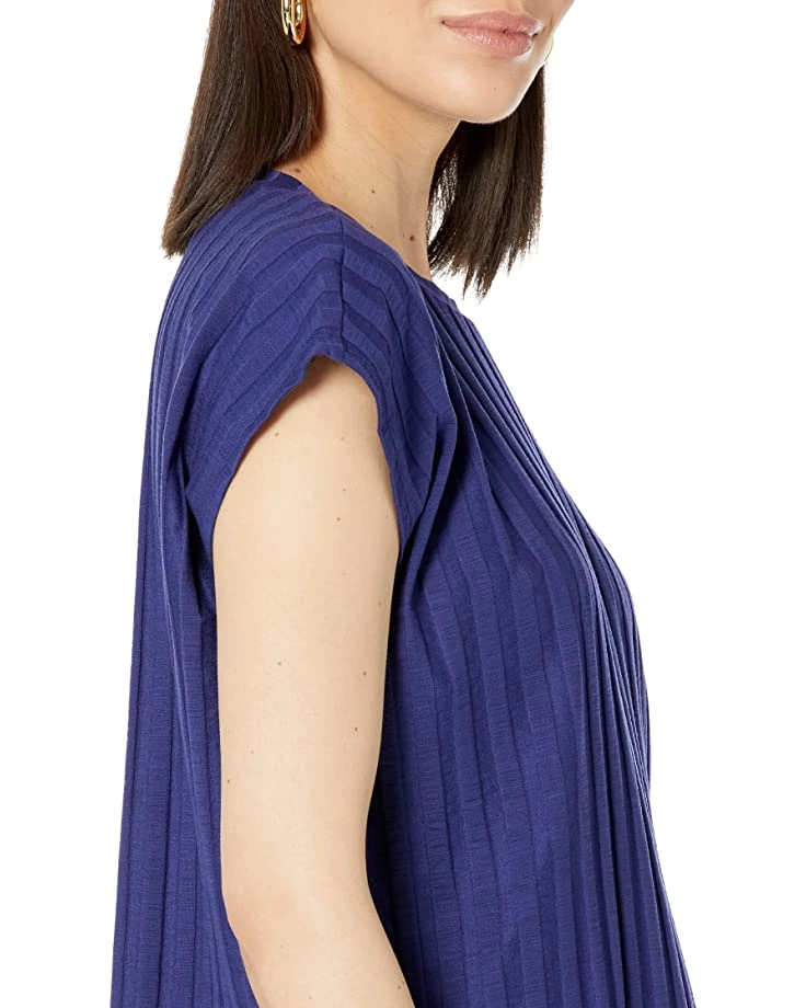 - Crew neckline with cap sleeves.