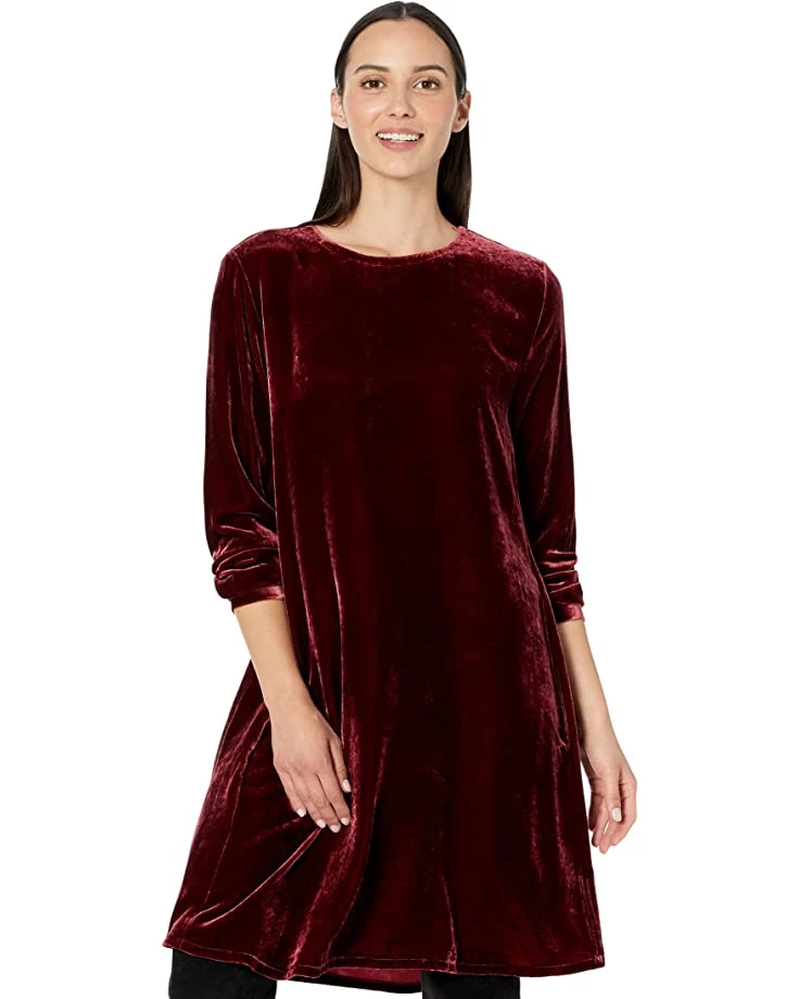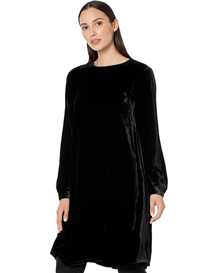 - Eileen Fisher® brings you the plush and soft Crew Neck Knee Length Dress, the perfect apparel to style your minimal outfit.