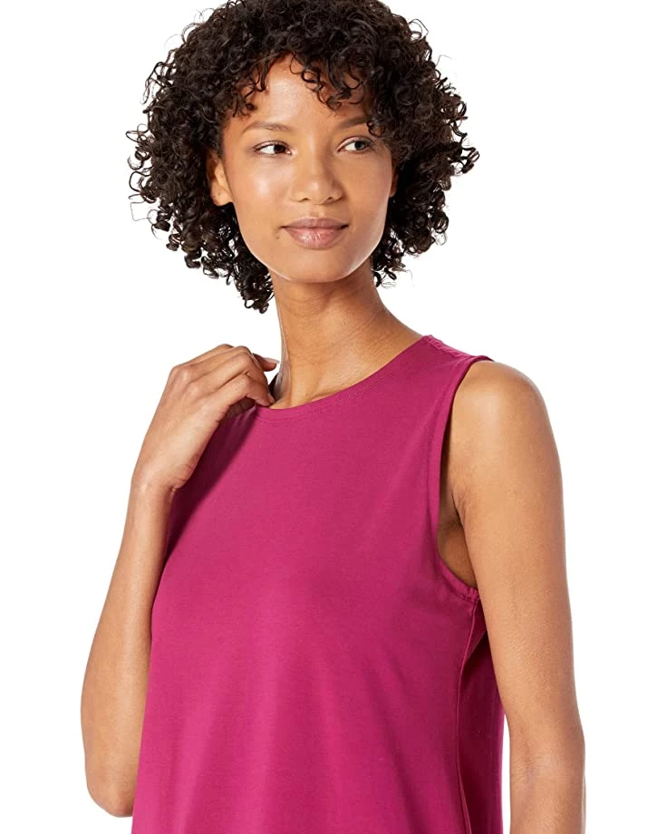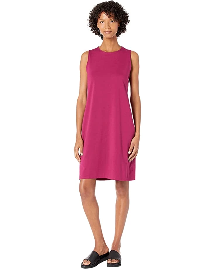 - Keep yourself happy and light wearing the Eileen Fisher® Crew Neck Knee Length Tank Dress in Organic Pima Cotton Stretch Jersey.