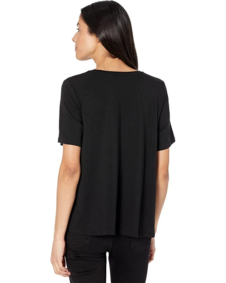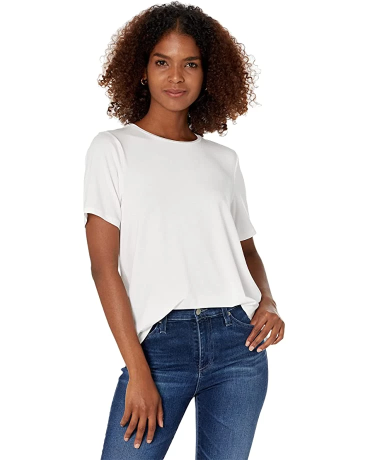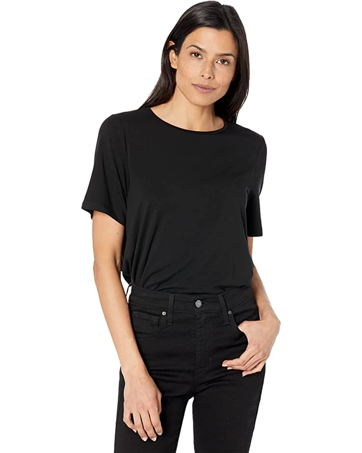 Eileen Fisher Crew Neck Short Short Sleeve Top in Fine Stretch Jersey Knit | Shirts & Tops