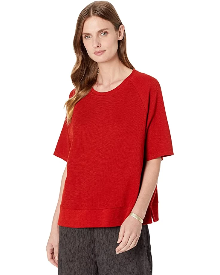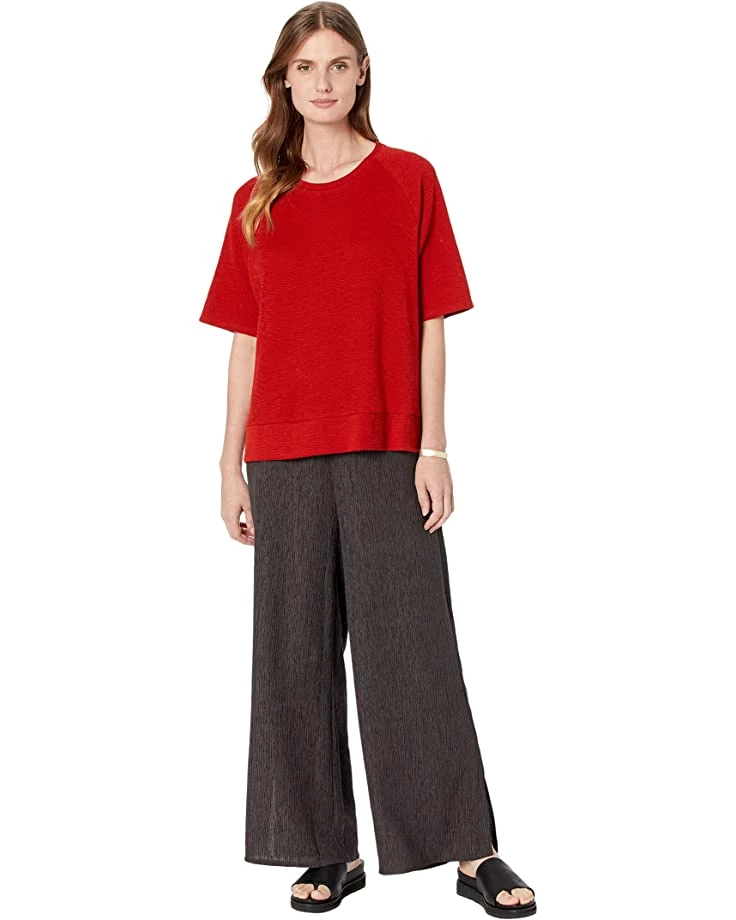 - Get yourself an upgrade wearing the classy Eileen Fisher® Crew Neck Short Sleeve Top.