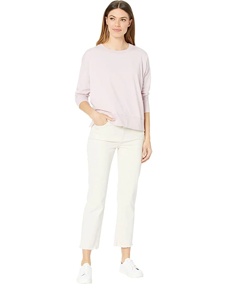- Enjoy your lazy weekends with EILEEN FISHER® Crew Neck Top with High-Low Hem in Organic Cotton Stretch Jersey.