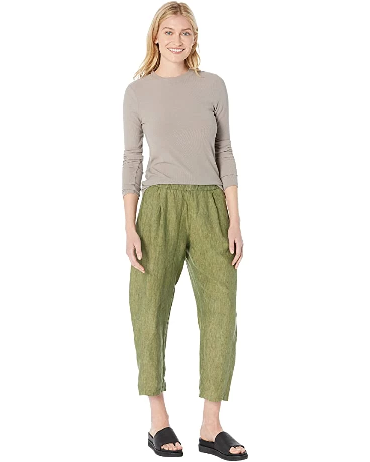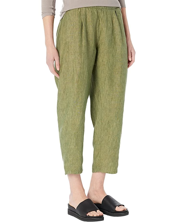 - Radiate super comfy vibes wearing the Eileen Fisher® Cropped Lantern Pants in Washed Organic Linen Delave.