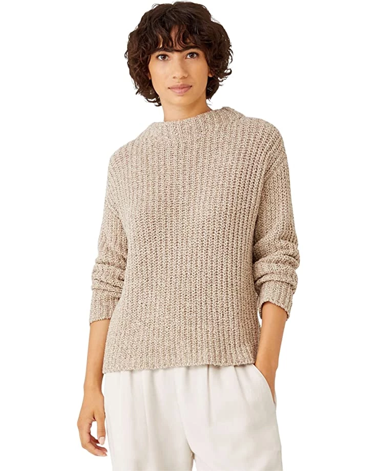 - Be trendy and comfortable wearing Eileen Fisher® Funnel Neck Box Sweater in Peruvian Organic Cotton Boucle.