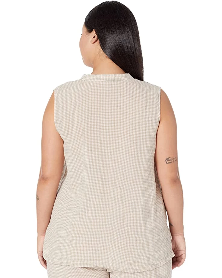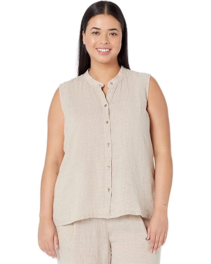 - Wear the Eileen Fisher® Mandarin Collar Sleeveless Shirt in Puckered Organic Linen for an elegant and relaxed look.