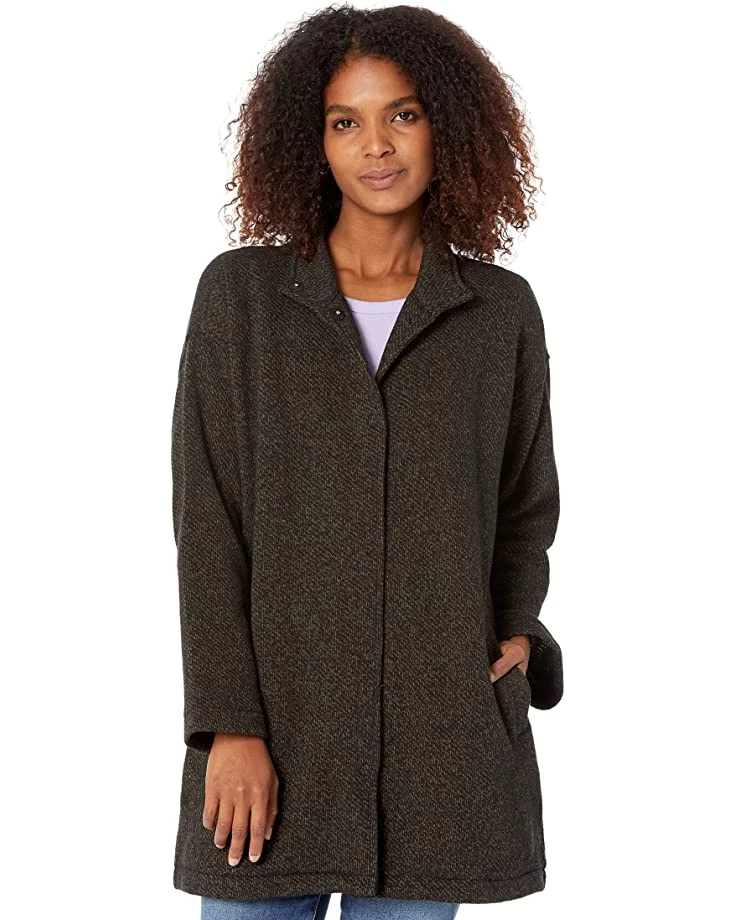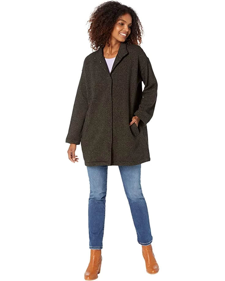 - Look effortlessly flawless while staying warm on chilly days in the EILEEN FISHER® Stand Collar Long Jacket.