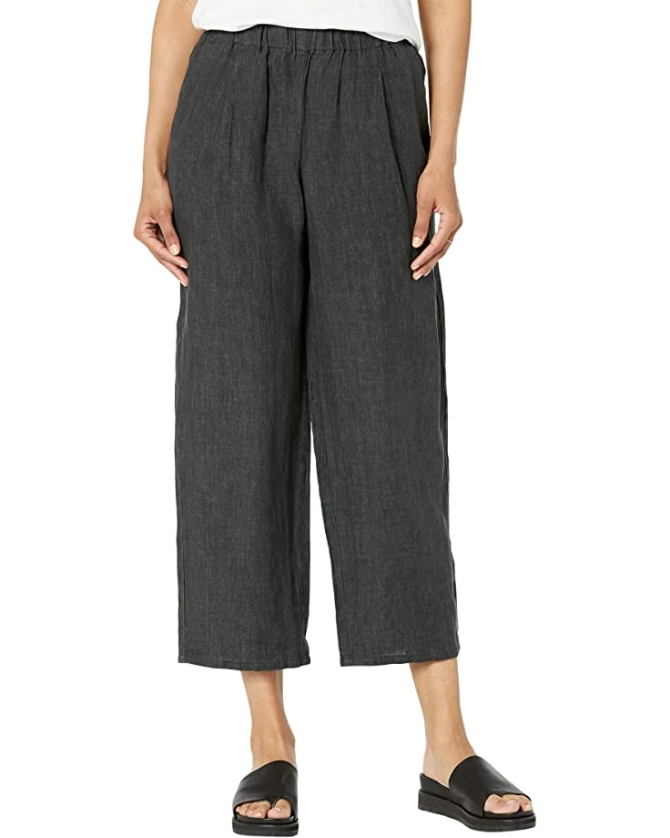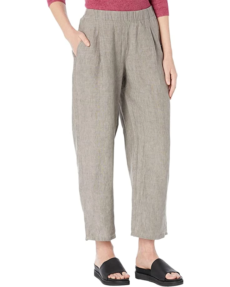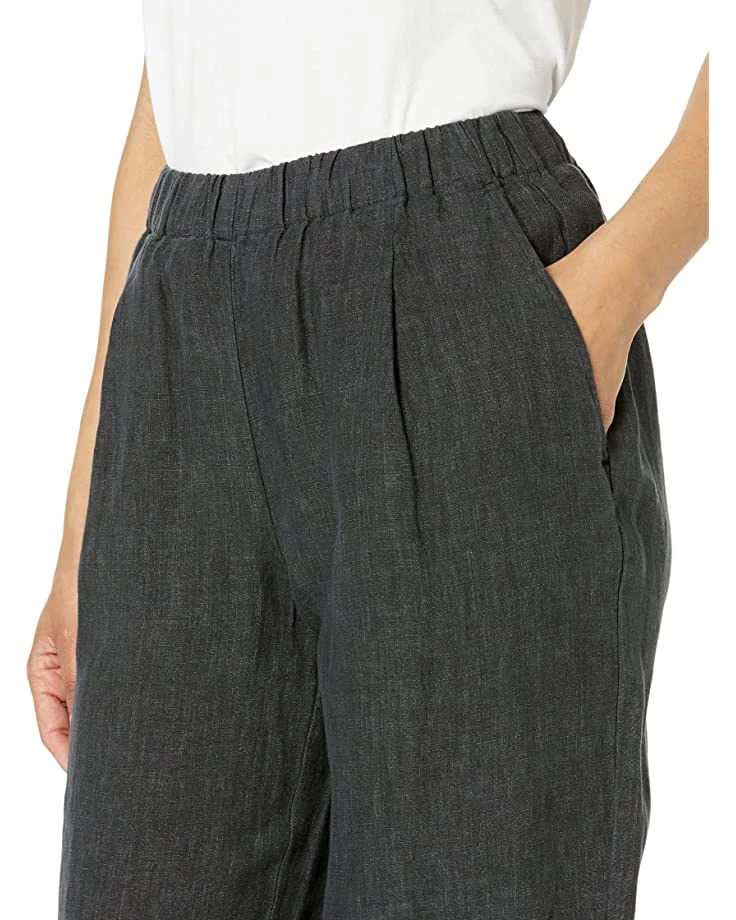 - Plan your day in style with the comfort that you need wearing Eileen Fisher® Straight Leg Ankle Pleated Pants in Washed Organic Linen Delave.