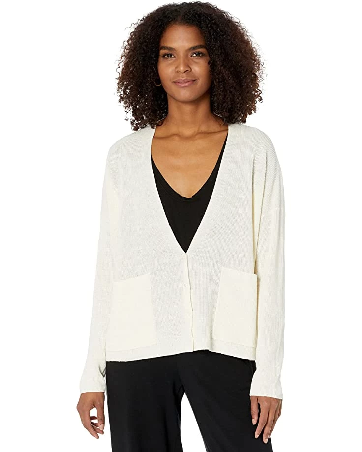 - Style elegantly wearing Eileen Fisher® V-Neck Cardigan in Organic Linen Cotton Half Cardigan.