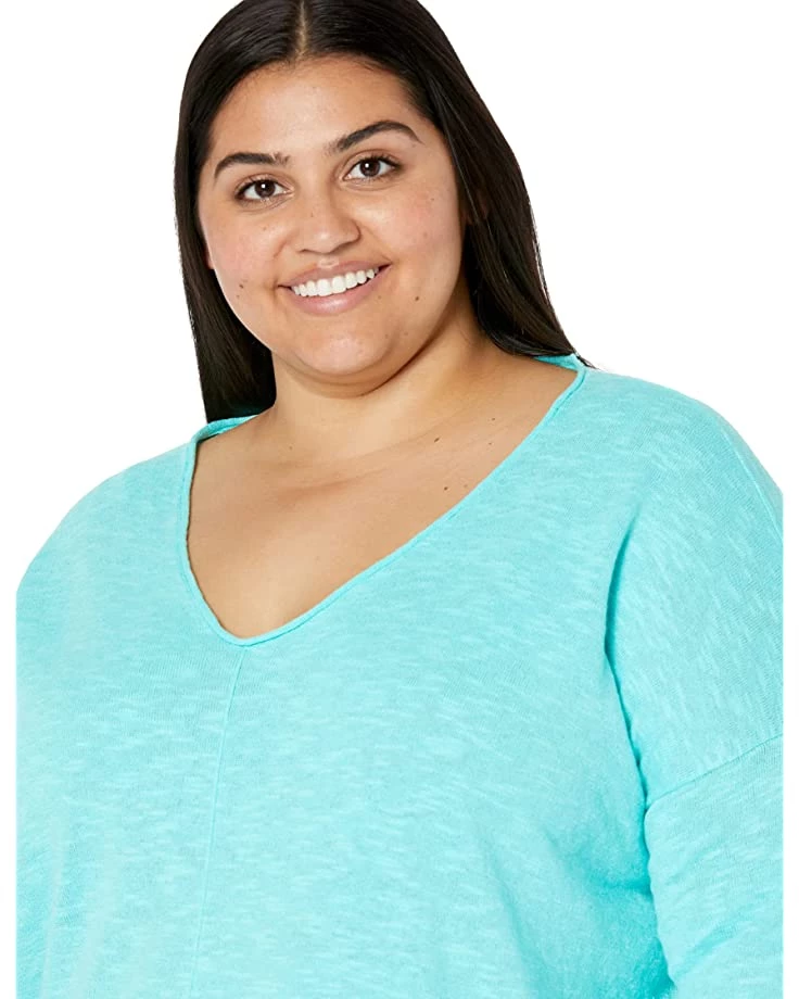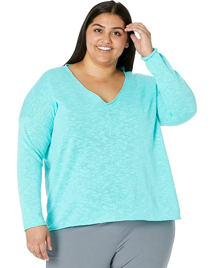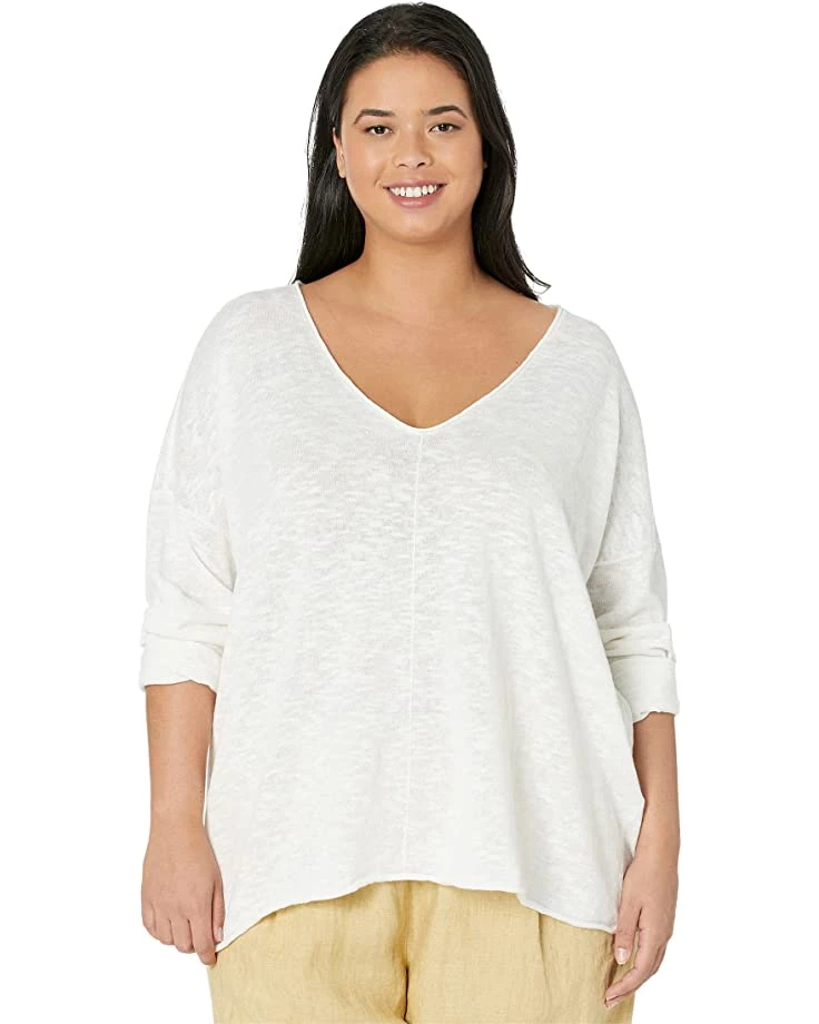 - You can ace any casual look wearing the pretty and simple Eileen Fisher® V-Neck Pullover in Organic Cotton Linen Slub.